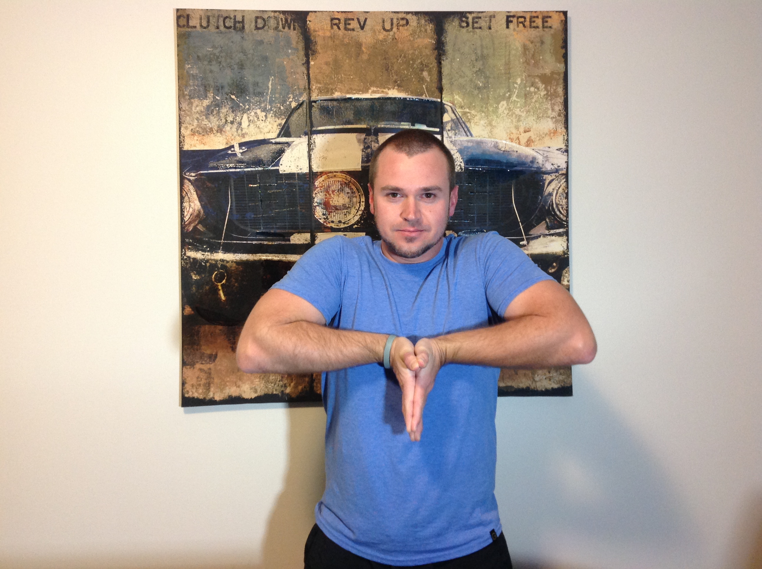 Now that we have experienced “the burn” in our wrists, and fingers, we are now about to experience another type of burn in our forearm muscles on top of our arms and the bottom of our arms. Place your arms away from you by your side placing your hands as if they are holding two walls up with your finger tips pointing towards the ceiling. You might feel a slight burn around the wrists and the top of your hands but for the most part you will feel it in the top of your forearms. Hold this position again for 15 to 20 seconds and keep this position for the next and final step.
