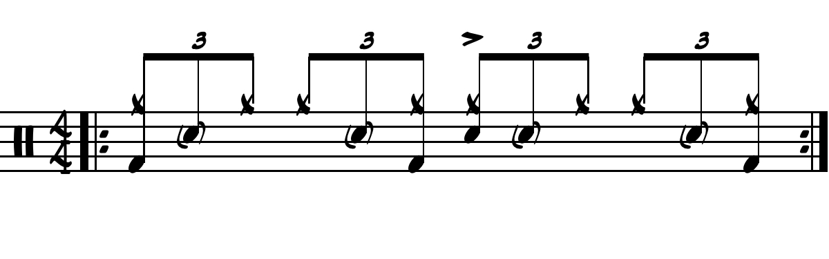Add a ghost note (tap stroke) in between each 2, such as the “a” in “trip” “a” “let” or… R l RR l RR l RR l R. Keep these tap strokes low as to add texture to the groove. If the height is too high it won’t come across well.