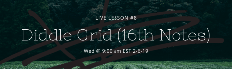 Download the free PDF here… Live Lesson #8 Diddle Grid (16th Notes) Live Lesson #8 Diddle Grid (16th Notes) https://t.co/JFqpl4gwOm — Matt Dudley (@mattdudleydrums) February 6, 2019 https://platform.twitter.com/widgets.js The Diddle […]